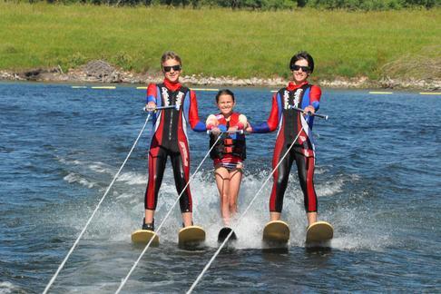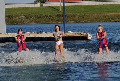 All kids start by working on basic two skiing form while being assessed to move onto higher levels of skiing. Depending on your child’s skill level they will work on the following water skiing skills: Two ski dock starts, synchronized group skiing, slalom ski drops, deep water slalom starts and confident slalom wake crossings.